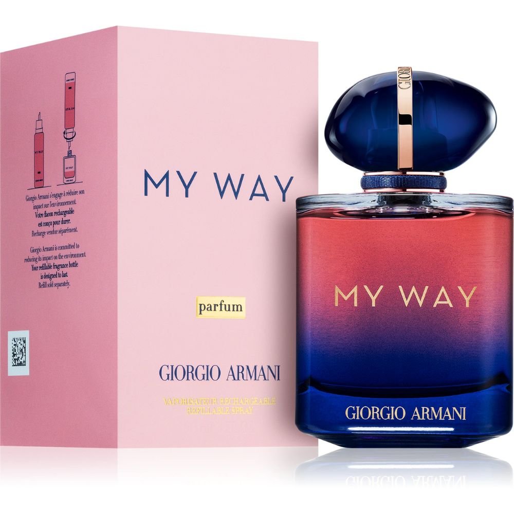 Бъдете отворени за новите възможности, срещайте се с другите и се осмелете да изживеете тези моменти с още по-силна емоция. С това предизвикателство е представен ароматът Armani My Way Intense, който върви по стъпките на предшественика си. Капачето, напомнящо на сувенир от пътуванията, си остава. Не се променя и формата на флакона, но увеличеният интензитет се отразява в стъклото, което в новата версия на дъното е оцветено в сини цветове.
