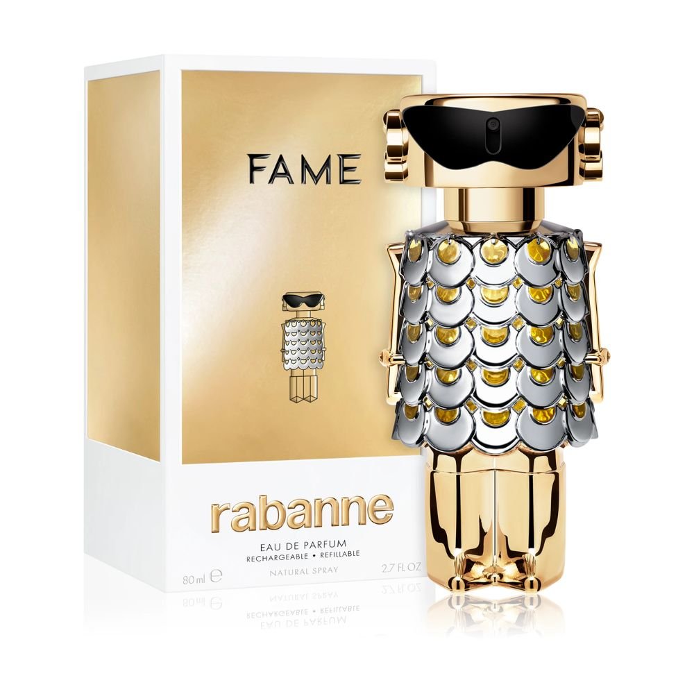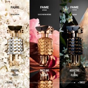 Paco Rabanne Fame е женски парфюм, който олицетворява съвременната свобода, чувственост и сила. Лансиран през 2022 година, този аромат е предназначен за жени, които искат да изразят своята увереност и неповторим стил. Fame съчетава цветни, ориенталски и плодов нотки, създавайки ярка и завладяваща композиция, която оставя трайно впечатление. Това е аромат за млади жени, които обичат да експериментират с нови и свежи аромати, но същевременно желаят да притежават изтънченост и елегантност.